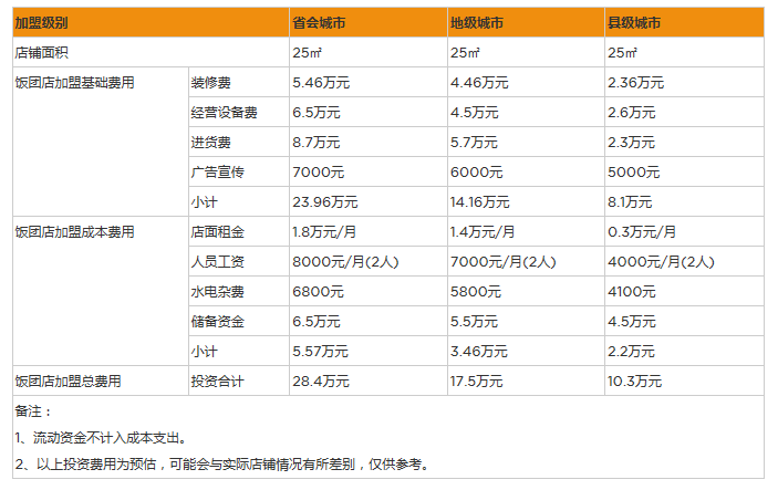 2、減少飯團店加盟運營支出: