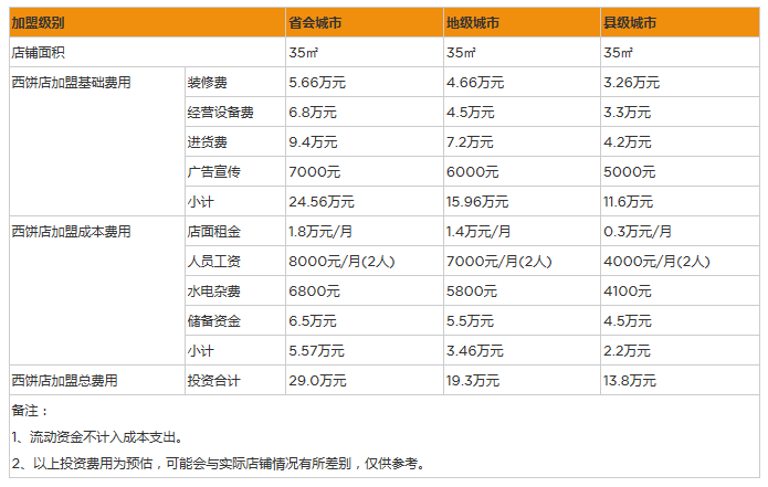 開家西餅店投資一般需要多少錢?35㎡店投資13萬